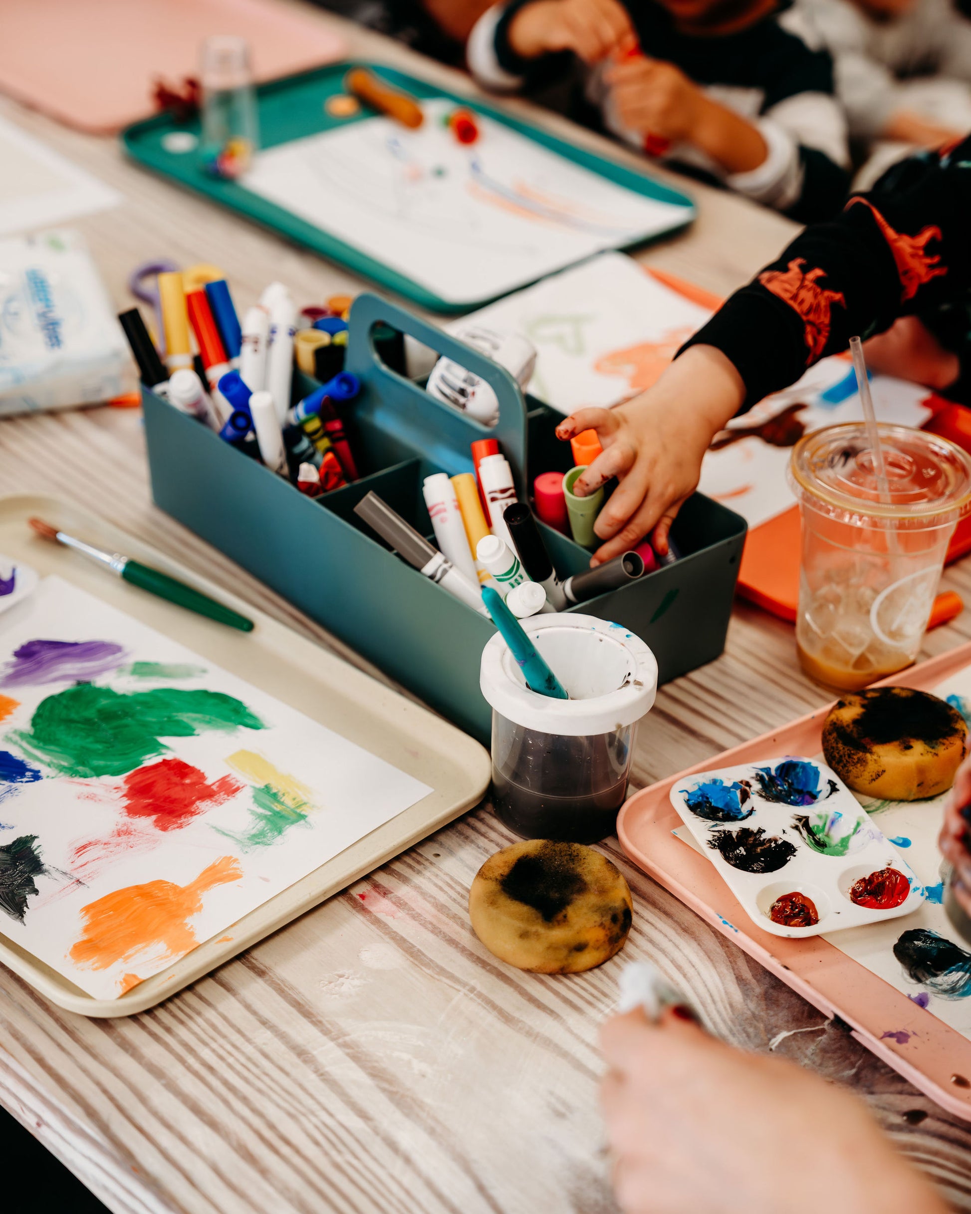 Our studio is a drop-in style creative space where kiddos can rotate through open-ended art stations, sensory play, and hands-on activities at their own pace. No rigid schedules, no mess at home — just intentional creative play and time to connect.